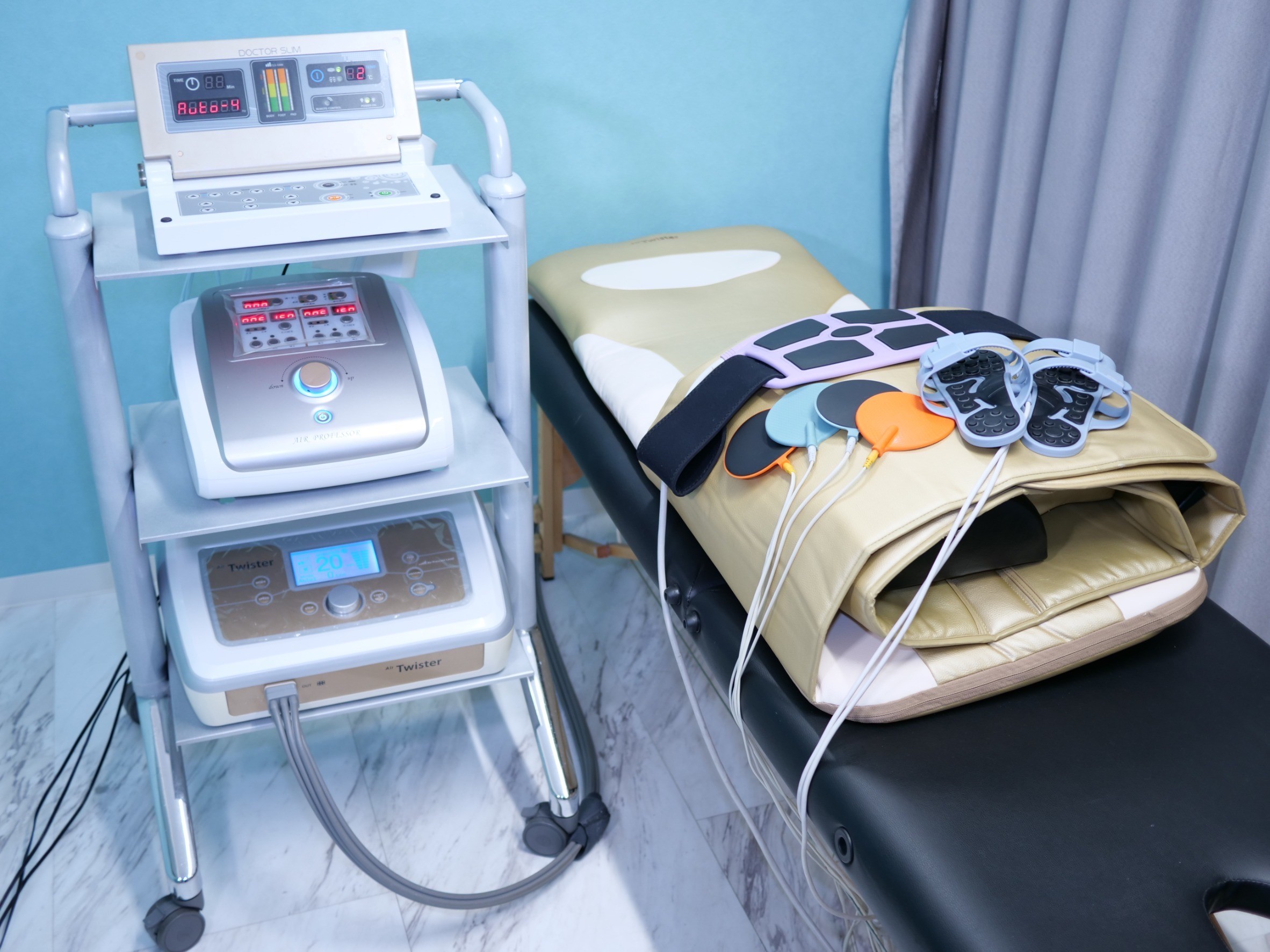 EMS×加圧×骨盤矯正の3つのマシンを同時に動かし、寝ながらトレーニングします!